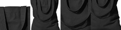 100% cotton canvas; Self-fabric handles; 10.25"W x 13.5"H x 5"D;