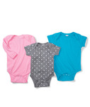 100% combed ring-spun cotton • 5-oz. • 1x1 baby rib • flatlock seams • double-needle ribbed neck, shoulder sleeve and leg openings • reinforced 3-snap closure • white sewn with 100% cotton thread • Sizes: NB; 6; 12; 18; 24 mos