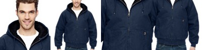 - Contrasting color 1x1 rib-knit collar and cuffs