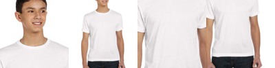 4.5 oz., 100% polyester; Moisture management jersey; Ribbed collar; Taped shoulder to shoulder with EasyTear™ label; Double-needle hemmed sleeves and bottom;