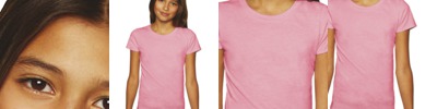100% combed cotton jersey • 4.3-oz. • 32 singles for extreme softness • front cover-stitched 1x1 baby rib-knit set-in collar • tear-away label • Sizes: XS-XL
