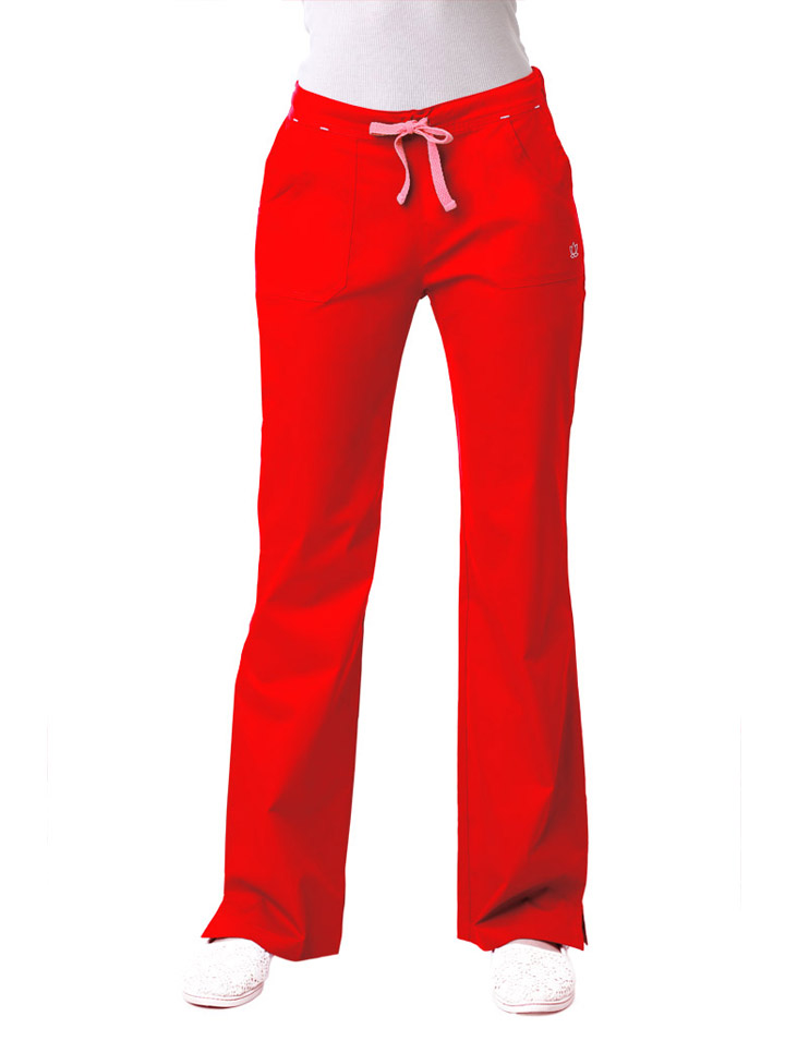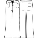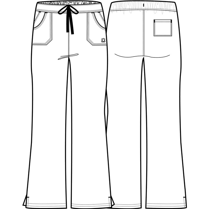 Fashion flare pant with back elastic and front twill drawstring Triple stitching at waist and pockets Four frontal slash pockets and one back pocket Contrast bartacking at all pressure points Vented hems for added mobility