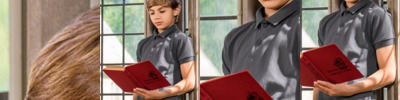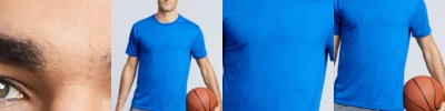 57% cotton/38% polyester/5% spandex • 4.3-oz. • 40 singles for extreme softness • self-fabric binding • tear-away label • Sizes: S-2XL