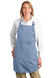 This apron has a soil release finish and gives you full length protection. 7-ounce,100% cotton twill with soil-release finish for added stain protection Two waist-level patch pockets, pen pocket 1-inch wide neck and waist ties, adjustable neck strap Measures 22"w x 30"l No soil-release finish on Washed Denim.