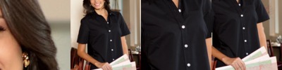 65% polyester/35% cotton • 5-oz. • wrinkle-resistant • stain-release fabric • moisture-wicking • tailored fit • dyed-to-match buttons • collar stays • front welt pocket • industrial laundry friendly • Sizes: S-2XL