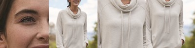 - Solid fleece body with charcoal fleck hood, drawcord and sleeves