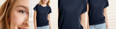 - Double-needle stitched sleeves and bottom hem