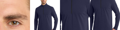 Two layers of 100% polyester wicking knit ; Wicks moisture away from the body ; Fully reversible ; Self-fabric mitered V-neck collar ; Contrast color side inserts ; Each layer hemmed separately for embellishment ; Outside locker label ; interior collar is contrasted (all body colors include charcoal grey contrast detailing except charcoal heather, which has black); concealed 6” aluminum zipper;