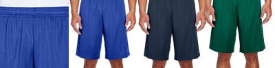 3.5 oz./yd2 / 130 gsm 100% polyester interlock; Moisture-wicking and UV 40+ protection; Side pockets; Team fit; Cationic dyes to ensure superior brightness and excellent color fastness; Elasticized waistband with flat internal drawcord; 4 1/2" inseam; Transitioning from heat-seal label to tear away label. Inventory may be mixed;