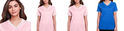 DG20CW CrownLux Performance® Ladies' Plaited Tipped V-Neck Top