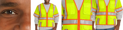 Two-tone contrast fabric under the reflective tape makes this breathable mesh vest stand out on the jobsite.