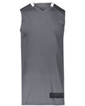 100% polyester wicking knit with True Hue Technology® that helps prevent dye migration; Moisture-wicking; Updated tailored fit; Tagless label; Outside locker label; V-neck collar; Designed to be NFHS compliant;