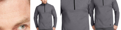This double knit, cotton-rich pullover is a triumph with integrated pockets and rubberized zippers for a modern look and feel.