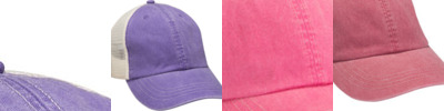 100% cotton twill two front panels; Soft mesh nylon back panels; Heavy enzyme wash; 6-panel; Unstructured; Low-profile; Two contrast color stripes on soft mesh side panels; Self fabric closure with silver sliding buckle and tuck in tunnel; Eyelets and button heavy raised contrast color stitching; Pre-curved visor ;
