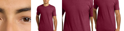 3.5 oz., 100% combed and ring-spun liquid cotton; 40 singles; Optimal stretch and recovery; Fashion fit; Side seams; Raw-edge double-collar neck; Loose fit; Tear-away label; Made in a W.R.A.P. certified factory;