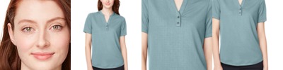 - Partial-open henley with metal two-snap closure