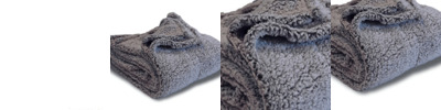 9 oz., 100% lambs wool sherpa; 100% polyester plush micro mink fleece; Cozy oversized fleece face that reverses to soft luxurious sherpa; Machine wash & dry; Weight: 220 g/sqm; Fully hemmed- 60" x 72"; Hidden zip pocket for easy embroidery access;