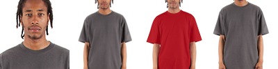 6 oz., 100% USA cotton, 18 singles; Heather Grey is 90% USA cotton/10% polyester; Charcoal Grey and Safety Green are 50% USA cotton/50% polyester; Shoulder-to-shoulder neck tape; 1" double-needle stitched sleeve and bottom hems; Tear away label; 7/8" Seamless non-topstitched collar; Quarter-turned to eliminate center crease; Forward-thrusted shoulder seam for comfortable neck fit; Classic fit;