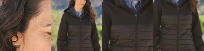 - 1x1 rib with spandex cuffs and bottom band for enhanced stretch and recovery