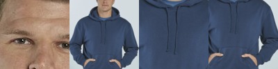 7.3 oz., 60% cotton, 40% polyester melange fleece; Self fabric scuba hood; Off-white drawcords; Set-on pouch pocket;