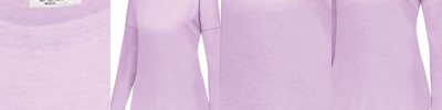 - Triple-needle coverstitched raglan sleeves, cuffs, side inserts and bottom band