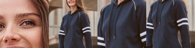 8645 Women's Varsity Fleece Piped Hooded Sweatshirt