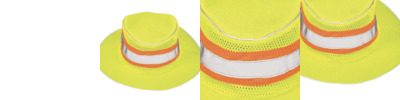 - 1" wide reflective material with 2" contrasting color material 360 degrees around the hat