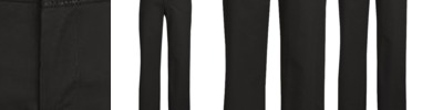 - Folder set waistband, 1.5". Stretch interlining for expanded comfort waist