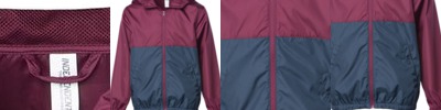 - Unlined hood with contrast drawcord