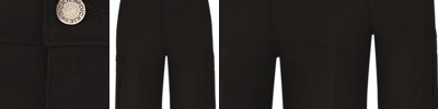 - Double patch pockets with button closure and pencil stall