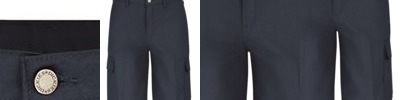 - Two slack-style front pockets, two set-in hip pockets, left pocket has button closure