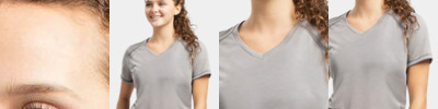 - Double thickness yoke and set-in mitered rib V-neck with bar tac