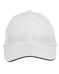 80% Polyester 20% CottonStructured Firm Front Low-Fitting "Great for Promotions" 6-panel cap Seamed Front Panel with Buckram 6 Sewn Eyelets 6 Rows Stitching on Visor Matching Fabric Undervisor Matching Color Sweatband Matching Fabric Adjustable Hook and Loop Closure