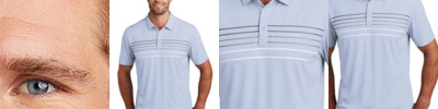 Tap into an unprecedented look with this wrinkle-resistant, quick-drying polo that features 4-way stretch and a large-scale chest stripe overlaid with texture.