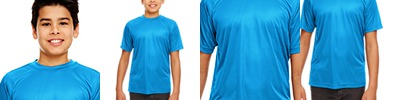 4 oz., 100% micro-polyester; Moisture-wicking; Pill-resistant; UPF 30+ protection; Snag-resistant; Athletic fit; Neck tape; 1/4" topstitching; Transitioning from heat-seal label to tear away label. Inventory may be mixed;