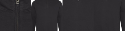 - Rib collar, cuffs, and hem band