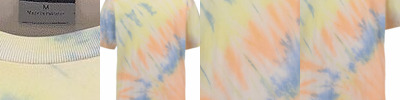 - 4.3 oz./yd², 50/50 ring-spun cotton/polyester tie-dyed and burnt out