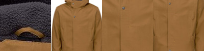 - Branded front zipper and storm flap