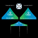 Canopy is printed and sewn Weather Resistant Tent Polyester. Print your brand message on each of the four peaks and valance panels. Our large format full color capabilities take artwork seam to seam unlike competitor tents that rely on small vinyl applications.