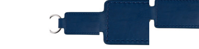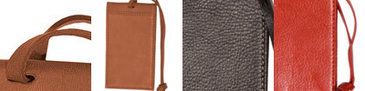 - Holds ID/business card behind acetate viewing window on back panel hidden by leather flap