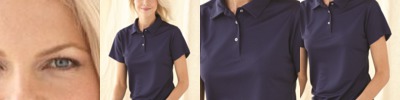 - 4-ounce, 100% polyester interlock sleeves, shoulders and neck