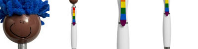 - Click-action ballpoint pen with smiley face, tie-shaped clip and mop-top hair
