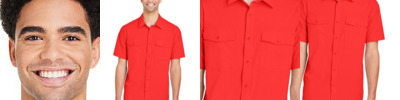Clean and simple, this button-down work shirt can do it all. A triple-stitched, wrinkle-free design maintains a professional appearance, day in and day out.