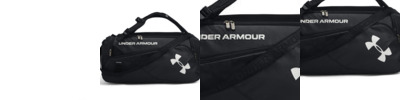 100% polyester; UA Storm technology delivers an element-battling, highly water-resistant finish; Tough, abrasion-resistant bottom and side panels; Two large, front zippered pockets; Removable, padded, HeatGear® shoulder strap for total comfort; Padded top grab handle; Large vented pocket for laundry, shoes and internal slip pockets; Embroidered UA label on side; Heat-seal UA logo on front; 24.6" x 12.1" x 11.4";