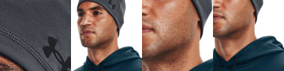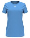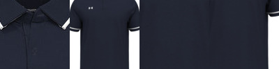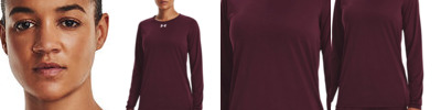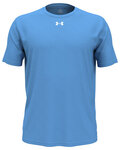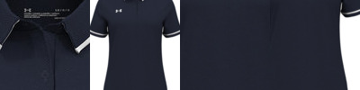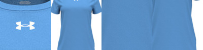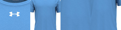 - UA woven label centered on left sleeve hem and UA heat seal center back neck