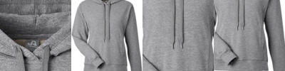 7.4 oz., 90% polyester, 10% spandex brushed heathered fleece