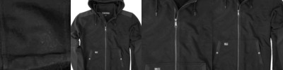 - 90/10 polyester/spandex dewspo reinforced water-repellent accents at shoulders, forearm, and pockets