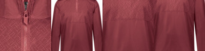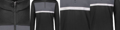 - Quarter zip pullover style with zipper garage