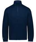 * 100% polyester double-knit * Woven label * Front zipper * Set-in sleeves * Front pockets * Dual inside pockets * Striped rib-knit collar, cuffs and bottom band