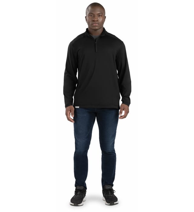 * 88% polyester/12% elastane Coolcore(r) fabric with color secure(r) technology that helps prevent dye migration * Coolcore(r) fabric is engineered to distribute moisture quickly throughout the garment. As the moisture spreads it dries faster and keeps you cool and comfortable, and has UPF 50 sun protection. * 4-way stretch properties allow for increased mobility * Garment protects against the sun with 50+ UPF * Wicks moisture * Tagless label * Quarter zip pullover style * Set-in sleeves with rolled forward shoulder seam